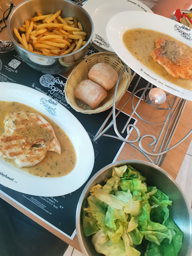 Pitoyable, Nous sortons de ce restaurant avec une déception immense!Je vais vous décrire notre expérience en détail ( à vous de juger ). Nous arrivons les premiers dans ce restaurant donc pas en temps de rush ! Nous commandons un pavé de saumon à la plancha pour Monsieur et pour ma part une pièce de magret de canard avec une cuisson saignante. Lorsque les plats arrivent mon magret est cuit comme une semelle de godasse que je fais constater à la serveuse qui renvoie en cuisine.En regardant le pavé de saumon de mon mari , je vois que lui aussi est quasiment trop cuit mais il se contente de son plat. Arrive mon 2 ème magret qui cette fois encore arrive trop cuit , je le fais une nouvelle fois constater par la serveuse. Elle me propose une fois encore de le renvoyer et je lui dit que non , je vais le manger comme ça tant pis .Donc je commence à manger à contre cœur et à la moitié de mon magret ; la serveuse revient une trois fois avec un nouveau magret car selon ses dires le cuisiner insite. Elle me reprend donc mon assiette avec mes frites pour ce 3 ème magret. A ma grande surprise ( ironie ), le magret qui devait être saignant est toujours trop cuit, rempli de nerfs et dur à couper . Nous redemandons des frites que nous attendons toujours! Mon mari a tenté de saucer son plat avec du pain que je qualifie de parpaing . Suite à tous ses désagréments, la serveuse nous propose de nous offrir le dessert que nous avons refusé car nous préférons arrêter le carnage. Lors de l'addition, notre serveuse nous fait 20% ( trop sympa ah ah ah ). Résultat 32 euros : cela nous a bien fait mal au c.... Conclusion : repas décevant, nonchalance des serveuses , les tables sont faites en format taille mini . Que dire de plus...