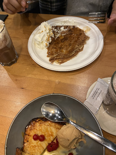 Ensuite, deux gaufres au chocolat avec chantilly ont été demandées et une sans chantilly. Un des serveurs arrive avec 3 gaufres au chocolat, aucune avec de la chantilly. On fait donc une réclamation, il les reprend toutes alors qu'on a dit pas de chantilly sur la troisiÚme, mais il insiste et nous arrache presque l'assiette des mains, pour revenir avec de la chantilly sur toutes les gaufres. Ici le client n'est pas écouté, qu'importe sa demande c'est le serveur qui décide visiblement.