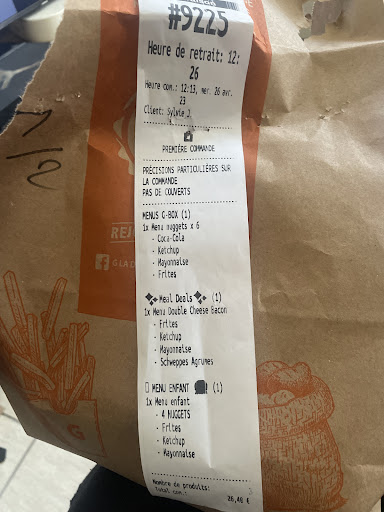 Read moreUn accueil toujours à désirer… entre les erreurs de commandes, les plats qui laisse à désirer avec une viande à moitié cramer 1 fois sur 2… ce que je trouve le plus choquant c’est le manque de professionnalisme des personnes présent à l’avant de restaurant qui refuse de prendre ou de nous laisser passer commande juste à cause de la présence d’un pauvre chien pris à bras, ce qui ne pose pas de soucis d’ordonner étant donner que l’on attend la commande à l’extérieur du restaurant, nous rentrant uniquement pour commander et récupéré la commande si elle ne peux pas nous être apporter… ce que la personne à la caisse a refuser d’entrer et nous a littéralement mis la porte. Que les chiens ne soit pas tolérant dans le fast food pour manger ceci est compréhensible mais lorsqu’il s’agit de prendre a emporter ceci est débile notamment lorsque l’on voit des grande chaîne comme Burger King ou McDo qui tolère les chiens dans le restaurant pendant l’attente de la commande tant que ses dernières ne gêne pas la circulation dans le restaurant et ne cause pas de trouble… c’est avec plaisir que nous ne retournerons pas dans...