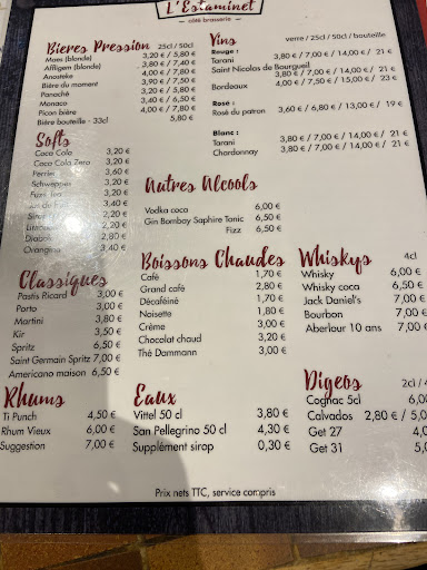 Magnifique adresse qui m'a transporter dans mon enfance que ce soit dans sa devanture l'intĂ©rieur et cette sublime odeur de plats cuisiner et qui a mijoter pendant des heures On ce laisse guider par l'hĂŽte qui nous suggĂšre les plats du jour "lentilles petit salĂ© et parmentier" Nous partons sur des menus de 15âŹ90 et 19âŹ90 Pour moi une salade gĂ©nĂ©reusement servi salade lardon maison (le lard coupĂ© et frit) et lĂ©gumes frais lentilles petit salĂ© et en dessert mousse au chocolat frais du matin Mon mari terrine de lapin MAISON merveilleux pas SEC pas SALĂ et parmentier de porc (hachĂ© et porc effilochĂ©) Ăźle flottante (FAIT Ă LA COMMANDE) Notre fille opte pour Ćufs mayo (MAYO MAISON) une merveille en dessert une brioche perdue Cette institution mĂ©rite bien plus que 5* et doit ĂȘtre connue de tous Les plats sont servis dans de le vaisselle de notre enfance dĂ©pareillĂ©es Petit mais convivial Les commandes sont pris sans carnet et servis sans erreurs ! Madame la cuisiniĂšre fait la cuisine le matin et fait le service du midi CHAPEAU BAS MADAME Ătant ancienne cuisiniĂšre de mon Ă©tablissement je vous doit un grand respect pour votre succulentes cuisine votre personnalitĂ© vrai et authentique comme votre cuisine Je vous invite vivement Ă dĂ©couvrir cette ESTAMINET Je vous garantis que vous ne serez pas déçu et en sortirais repue avec des plats gĂ©nĂ©reusement servis propre et bien prĂ©sentĂ©s Avec les boissons nous en avons eu pour 71⏠environ avec boissons A trĂšs bientĂŽt pour un...