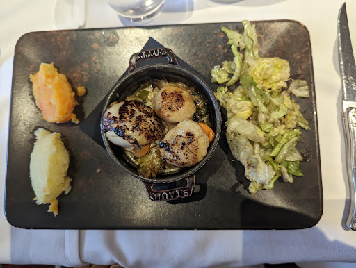 Le Port Saint Leu in Amiens is a French restaurant that offers unique options like the filet de bar (seabass fillet), le Welsh (beef and cheese) and crepes. The food is generally well-prepared, but can be heavy and rich in sauce, which may not be to everyone's taste. The atmosphere is cozy and intimate, with dim lighting and white tablecloths, but the dim lighting can make it difficult to read the menu.