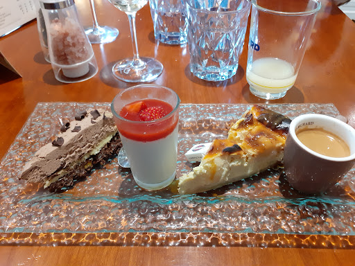 Et pour les desserts: 2 profiteroles les choux cramés, franchement c’est pas facile de faire encore constater j’ai donc échangé mon dessert contre une tartelette chocolat qui était bonne.