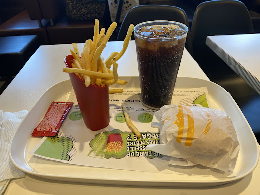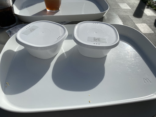 Read moreNo I do not hope other Donald’s will follow this stupid concept. It took more then 20 minutes before the food came. It was cold, the Big Mac did not come in a box, but wrapped in a paper, ugly and not stashed nicely. The nuggets came in some disgusting prison looking cup thingy. The plates were dirty. The drinks came in reusable cups. No straws. The entity concept of eating your fastfood from card box boxes...