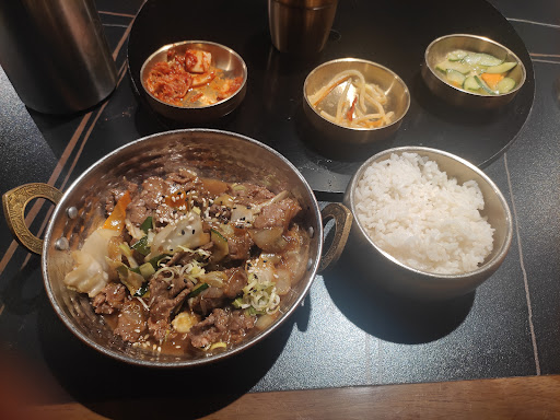 Read moreUne cuisine délicieuse et de qualité mais malheureusement un service déplorable. Le serveur était seul en salle, je peux comprendre qu'on se sente dépassé mais cela n'empêche pas de rester respectueux. Lorsqu'il est venu prendre notre commande, nous avions à peine commencé qu'il soupirait et levait les yeux au ciel. Quand mon amie a demandé à boire un mojito (qui apparaissait sur la carte), il lui a simplement répondu « non » , car « on ne prend pas un mojito dans un restaurant coréen, c'est pas moi qui ai fait la carte, j'y peux rien si ça apparaît dessus». Au moment de commander à manger, il a soupiré car nous prenions plusieurs plats et qu'il lui faudrait le téléphone pour noter tous les plats (En même temps on était une table de 6...). Et le pompon, alors que mon ami hésitait entre deux plats, il a balancé « dépêchez-vous par contre». Alors que nous avions fini de manger et que nos plats avaient été débarrassés, il a fallu attendre que le restaurant soit vide et que nous interpellions le serveur pour qu'on daigne nous donner la carte pour commander les desserts... C'est vraiment dommage car la cuisine était délicieuse, mais vu le désagréable moment que nous avons passé, je sais que je n'y...