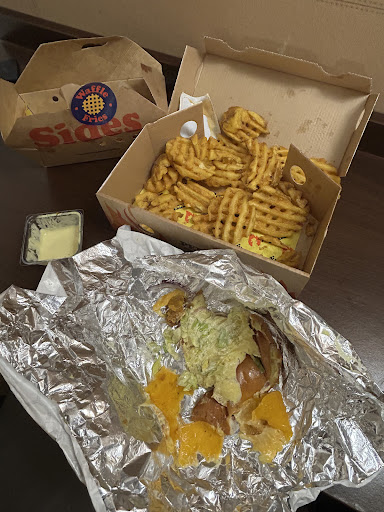 👉 Qualité des plats médiocre : les burgers sont gros, certes, mais secs et sans sauce, ce qui gâche complètement la dégustation. Les frites waffles sont molles, mal cuites, preuve d’un gros manque de savoir-faire en cuisine.