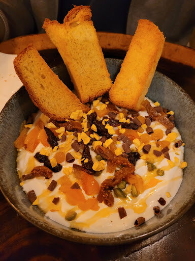 Read moreUne excellente expérience. Nous y sommes arrivés sur recommandation et nous avons bien fait de dîner là. Un petit restaurant où il sera prudent de réserver tant le bouche à oreille sera favorable. Dans une ambiance cosy, le restaurant propose une carte d'une page, garantie de plats du moment. Les entrées, d'une purée de panais vanillée délicieuse, un houmous très joliment travaillé et présenté, un brie pané... En plats, les Saint Jacques parfaitement cuites et accompagnées d'une purée, un filet de bar et des côtes d'agneau, chaque assiette très joliment présentée... Un vrai bonheur dans l'assiette ! On reviendra avec plaisir découvrir les nouvelles surprises de la carte... Le seul bémol, et c'est anecdotique, serait ce treillis vert au plafond ! Mais on passe le temps le nez dans son assiette et c'est...