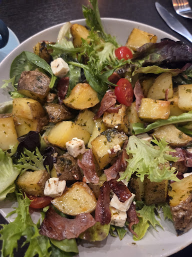 L'heure du déjeuner arrive et nous sommes à Amiens, une ville dont nous ne connaissons rien par une fraîche journée d'hiver, en revenant de la cathédrale, nous avons considéré ce café comme la solution à nos besoins du déjeuner. Nous ne voulions pas de menu du jour car cela aurait été trop de nourriture. Le fait que leur nourriture soit entièrement préparée sur place était l'élément décisif pour nous, alors nous y sommes allés. Nous avons été conduits à notre table par une personne très joyeuse et gentille qui nous a immédiatement accueillis, l'endroit était simple mais confortable et chaleureux. Nous avons commandé du thé noir et du lait froid, la soupe du jour, une soupe à la courge musquée et à la noix de coco, et j'ai eu une salade tiède ; tomates, feta et pommes de terre. Le thé était délicieux, nous les Anglais sommes très précis sur notre thé et souvent en France on nous donne malheureusement une tasse d'eau tiède et un sachet liptons étiquette jaune, je vous assure que c'est un délit de trahison chez nous ! Notre nourriture est arrivée à ce moment-là, le café était plein et occupé, il a conservé son ambiance relaxante, en partie grâce à la personne qui nous a accueillis et qui travaillait si dur pour que tout se passe bien tout en conservant son attitude merveilleuse, ce qui n'est pas une mince affaire en soi. . La nourriture était délicieuse, c'était exactement ce dont nous avions besoin. Par pure chance et sans jugement, nous avons trouvé un café vraiment spécial, absolument idéal à tous points de vue et que je n'hésiterais pas à recommander ou à retourner. Ce n'est pas de la nourriture raffinée, c'est juste un plat simple que vous voulez manger, préparé avec un vrai cœur et dans un environnement vraiment accueillant. On ne pouvait pas...