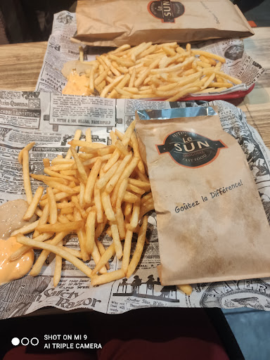 Ich- habe die Sun Baguette mit der Fanta bestellt, er hat daraufhin gefragt, welche Sauce. Und da er nichts von Pommes erwähnt hatte und ich dachte er meinte wegen dem Burger, habe ich aber erstmal nachgefragt, welche Saucen alles zur Auswahl stehen. Er zeigte über sich auf den Bildschirm , welcher ich zuvor nicht bemerkt hatte. Allerdings waren mir die Saucen vom Namen her unbekannt, da ich diese nicht auf FR kannte; außerdem sind Saucen-Namen nicht mein Gebiet. Also habe ich bei dem Mitarbeiter an der Theke gefragt, was der Unterschied zwischen Andalouse (ich glaube die hieß so) und Samurai ist. (Haben uns auf FR ausgetauscht) Er: "das ist das selbe.. Also beides etwas pikant" Ich fragte wegen der Sauce Blanche, er antwortete mit Knoblauch,also entschied ich mich für diese. Dann hat mein Freund bestellt und er fragte welche Sauce er zu seinen Pommes haben möchte, und ich hatte nicht verstanden, dass ich die Aioli für die Pommes gewählt hatte.. hat dann zusammen leider nicht so ganz gepasst ..- also Kommunikation und Erklärbereitschaft/ guter Kundenservice hat man auf seiner Seite nicht so wirklich gefühlt...