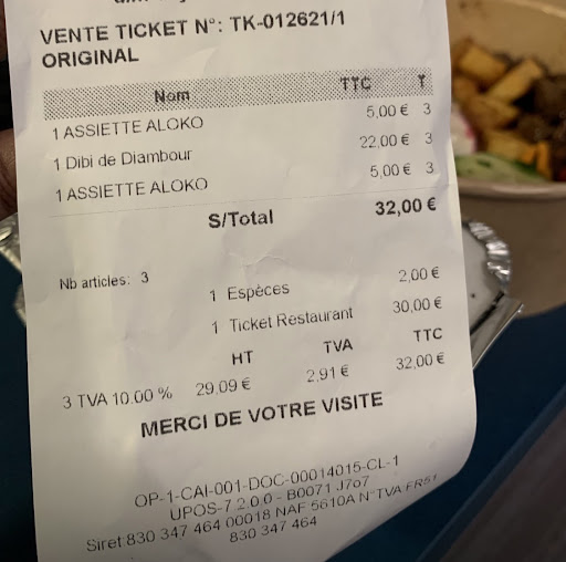 J’ai dépensé 22 euros pour un dibi [qui je rappelle est de la viande braisée au feu de bois] et 10 euros pour de la banane grillée. J’ai été déçue de voir arriver à la maison que ce n’était pas du dibi qu’on m’avait servi mais un plat de pommes de terre et du bœuf sauté !! J’ai cru voir flou je vous jure ! 22 euros pour du dibi pour au final des pommes de terres que je n’avais même pas demandé et quelques morceaux de viande.