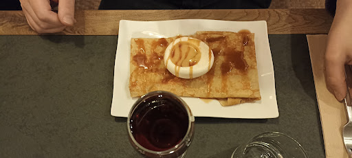 Read moreOn était venu pour fêter l'anniversaire de ma femme et ça devait être une bonne soirée en famille. On avait réservé pour 20h30 et on a eu un peu de retard 20 minutes,la serveuse m'a appelé pour me dire que j'aurai dû la rappeler pour mon retard, ça commençait bien. Une fois qu'on est arrivé sur place, on a eu un accueil peu chaleureux de sa part, qu'il fallait vite choisir car les cuisines allaient bientôt s'arrêter . On avait choisi assez rapidement et on avait bien stipulé que notre fille voulait une crêpe jambon fromage car elle n'aime pas trop les galettes et lorsque son plat est arrivé c'était une galette et non une crêpe,on a laissé couler car c'était la cuisinière et elle était agréable. Pour information, aucune galette n'a de la sauce tomate, c'est quand même dommage. Autrement les desserts étaient bons. Pour pas perdre de temps j'ai demandé à la serveuse de préparer 2 cafés crème avec l'addition mais j'avais l'impression qu'on la dérangeait car elle était en train de faire la vaisselle. Au moment de partir, tout juste s'il y avait quelqu'un pour nous dire au revoir. On était les derniers et il était seulement 22h15 pour un samedi. Déçu par cette nouvelle Crêperie pour nous. A...