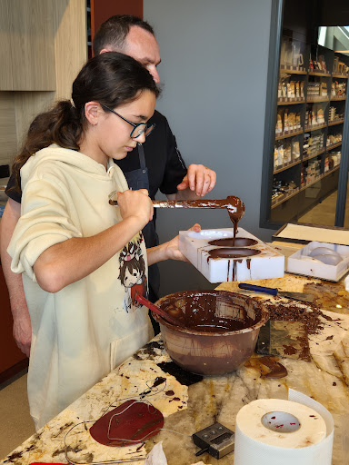 2ème atelier fait ! Après l'atelier "chocolat de pâques", aujourd'hui c'était atelier "tablette Dubaï". Xavier le chef est très pédagogue, sympathique, et nous donne pleins de super conseils pour pouvoir refaire les recettes à la maison ! Il faut dire que les matières premières sont de qualités professionnelles ! Toute l'équipe du magasin est vraiment accueillante, souriante et disponible. N'hésitez pas à réserver un atelier ! Page Facebook...