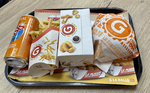 "G La Dalle" est un établissement qui se distingue par son offre culinaire, principalement orientée autour de plats généreux et savoureux. L'ambiance du lieu, souvent décrite comme accueillante et chaleureuse, contribue à une expérience de repas agréable, surtout pour ceux qui cherchent un lieu convivial pour manger en groupe ou en famille.