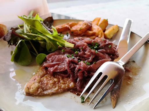 D'extérieur, le resto ne paie pas de mine. On entre, et là on est surpris par une déco de goût, feutrée, tamisée et élégante. On nous apporte la carte. La carte est alléchante, les plats sont variés mais pas trop nombreux. Elle donne envie. Puis on a à faire à une serveuse non compétente. On peut être inefficace mais agréable. Il n'en est rien. Dommage, le reste de l'équipe a l'air sympa. Elle ne connait pas les rudiments du service et de la restauration : pas un sourire, on doit participer au débarrassage des assiettes qu'elle désigne une à une de manière à ce qu'on lui fasse passer, même chose pour les verres à pied, l'eau + le pain sont à réclamer (...la base), elle n'a même pas réalisé en 2h sur place qu'il nous manquait des verres, ... Les entrées arrivent de manière décousue, chacun mange l'un après l'autre, les frites réclamées 4 fois arriveront au dessert ... Au bout d'une heure et demi les plats ne sont toujours pas arrivés. On se fait presque engueuler pour avoir le culot de demander quand nos plats seront servis... Elle prend soin à 3 reprises de nous dire qu'elle n'est responsable de rien (heureusement pour le resto !), que c'est la faute de la cuisine, prend le soin à chaque fois de nous répondre sèchement cela mais à aucun moment elle ne pense qu'il serait bon de sourire ou de s'excuser. Assez lunaire comme sens de l'accueil. Nb. Pour cette personne : vu que les 6 personnes assises à côté de nous ont été servies des mêmes plats que nous avant nous alors qu'elles étaient arrivées après nous, ... Il semblerait que le soucis de logistique vienne de la salle et non de la cuisine. Simple logique. C'est dommage, les autres serveurs avaient l'air plus sympas. En même temps il n'est pas difficile de donner plus qu'elle. ^^ Puis, les assiettes ... Les intitulés et les prix laissent à penser à un niveau de cuisine assez pointu. Les saisons sont respectées, les modes aussi. Au final on se retrouve avec un foie gras poilé anecdotique dont l'accompagnement saturé de sucre auquel on ajoute une boule de glace (?) prennent le pas sur le reste, des suprêmes de volailles secs, un poisson à l'odeur et au goût douteux, des accompagnements de pâtes se transforment en frites dans l'assiette et un burger sans intérêt malgré la promesse de l'effiloché. Ce joli lieu donne envie d'y passer du temps ... Mais pas du temps à attendre des plats qui s'avèrent décevant. Heureusement, après 1h30 d'attente, le responsable arrive et, en quelques minutes, s'excuse, fais un geste commercial, et semble sincèrement désolé. Merci à lui. Mais le service par cette personne déplorable et pas professionnel, la longue attente et la déception gustative font que le moment n'était pas des plus agréables....
