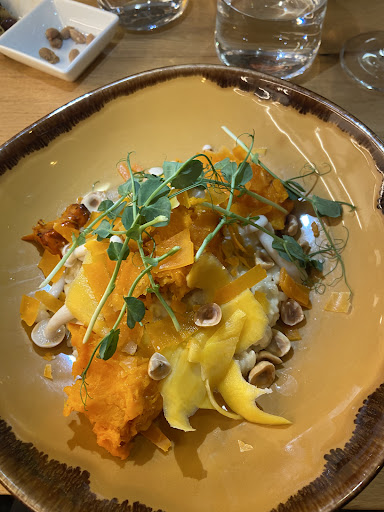 La planche océane ne nous a pas convaincu (hormis le saumon qui était délicieux). Nous avons pris deux poitrine de porc confit. Ce fut une belle déception. La viande n'est pas tendre contrairement à ce que l'on pourrait attendre. Elle n'est pas assaisonnée (ou très peu). La vinaigrette aux herbes ne sauve pas le tout. Le risotto au asperge est ordinaire. Pas bon, ni mauvais.
