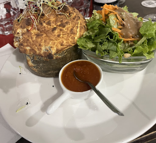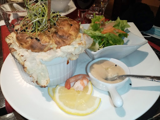 Read moreBelle découverte Type de restaurant: restaurant traditionnel à thème, le soufflet. Soufflet végétarien. Réservez avant et si vous arrivez en retard de 15 min, vous n'aurez plus de table. L'heure c'est l'heure. Le lieu est vraiment petit, ce n'est pas un restaurant calme ni intimiste. De premier abord, l'accueil est assez maladroit et peu convivial. On ne sait pas où se mettre. Dommage car le personnel est vraiment sympathique. Concernant la carte, vous avez plutôt un choix varié: salé végétarien, poisson, viande et sucré. Le soufflet est accompagné d'une salade et de sa sauce. C'est assez surprenant, c'est léger, très bon. Je vous recommande le st Jacques, sol et écrevisses. Pour moi, le coup de coeur reste le dessert. Exceptionnel, le soufflet au spéculos et son caramel beurre salé. Je ne suis pas dessert, sucré mais alors là, on a envie d'y retourner. Un dessert réconfortant, allez y. Pour la carte vin, nous sommes très restreint.Il y a peu de choix pour accompagné votre plat. Je vous conseille le Chinon car le Saumur Champigny était vert, âpre. Je vous recommande ce restaurant pour une découverte spécifique du soufflet, vous ne...