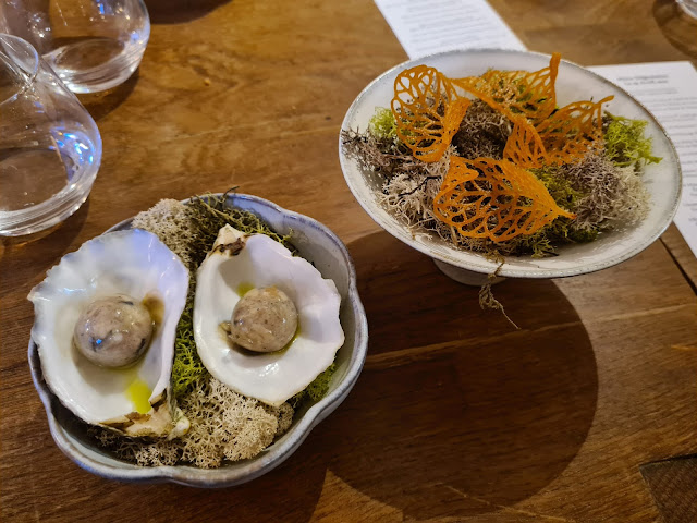 Read moreCommençons par le plus important : les plats sont excellents. Les produits sont simples, mais travaillés magnifiquement aussi bien sur le fond que sur la forme. Cela permet de découvrir (ou re découvrir) certaines saveurs (huitre, anguille, ou encore topinambour par exemple), un régal pour les papilles. Néanmoins, je dois reconnaitre que je fus déçu sur quelques points, notamment l'accord mets & vins : les vins sont bons, mais sans plus, les verres sont vraiment servis très légèrement (on est plus sur de la dégustation), bref, vu le tarif, l'accord mets & vins est très perfectible. En restant sur la quantité, je suis sorti du restaurant en ayant faim (ce qui ne m'était pas arrivé depuis une bonne décennie). Tous les plats sont excellents, mais ça reste vraiment frugal (majorité de légumes), des petites portions de dégustation en quelque sorte. Pour conclure, restaurant excellent, mais pas sûr que le prix à la fin de la soirée soit totalement justifié, l’accord mets & vins doit...