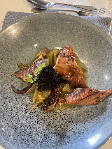 Read moreAcceuil et service à revoir… on ne se croit pas du tout dans un bon resto ! Ça fait mal de payer le prix de ce resto pour la prestation fournie ! Manque de sourire dès l’accueil. Des loupés dans le service : on nous installe sur une table non dressée et on nous la dresse, sans sourire (l’impression de déranger !), l’ordre de service (pas de respect des anciens). On était en extérieur et il a commencé à pleuvoir on demande donc d’aller à l’intérieur pile au moment où arrivait la bouteille de vin, résultat il a fallu réclamer qu’on nous l’ouvre une fois à l’intérieur (et une fois ouverte on n’a même pas attendu qu’on puisse la goutter…) heureusement elle n’était pas bouchonnée… à 47€ la bouteille on s’attend à un peu de considération du produit). Ensuite, les plats : bons mais rien de transcendant (association chaud / acidité dans les différents plats qui n’emballe pas réellement les papilles). Après le dessert on nous sert des petites bouchées sucrées, sans couverts pour les prendre (ça ne se prenait pas à la main puisque ça fondait…). L’attente des cafés interminable.