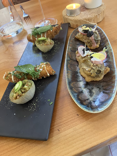 Read moreRestaurant dans un très bel endroit avec une bonne ambiance, et un service très sympathique. Notre expérience a été malheureusement gâchée par l'attitude agressive du chef qui a fermement refusé d'accepter un feedback constructif et bienveillant concernant une entrée immangeable et impossible de couper facilement avec un couteau (le poulpe de sable: fortement déconseillé de le commander car très dur, tiède et caoutchouteux; on se pose la question si cela n'est pas un recyclage de la veille). Notre serveuse nous présente ses excuses en nous disant, "ce n'est pas la première fois que ce plat retourne en cuisine." En fin de repas, j'ai été étonnée de voir les entrées sur notre addition. Quand j'ai eu le malheur de gentiment refaire la remarque, le chef est venu rapidement pour "m'expliquer" que cela est totalement "normal" et que nous étions "difficiles," "mal informés," et même "peu familiers" avec ce poulpe ainsi que sa cuisson. Cela est donc de notre faute, a priori. Très étonnant sachant qu'une autre table le même soir a fait la même remarque concernant cette même entrée. Je n'ai jamais vu ce genre de discours d'un chef, que je dirais même irrespectueux. Je tiens à dire que le reste du repas était agréable et goûteux, et heureusement qu'une autre personne avec plus de bon sens a pu enlever ces entrées de l'addition. Quel dommage pour cette agression insensée et "gratuite" par le chef en fin de soirée; cela peut fortement dissuader les clients de venir et/ou...