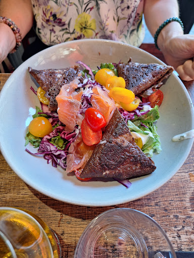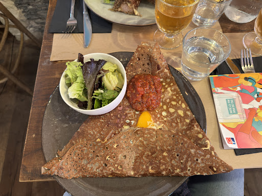 Crêperie très bien située en plein centre d’Angers. Les galettes et les crêpes sont très bonnes. Nous avons eu ce jour-là un gros problème de service. Si vous vous attendez à déjeuner rapidement lorsque le restaurant est plein, passez votre chemin ! A l’évidence le service et la cuisine sont désorganisés : nous avions pris un apéritif et le service des deux premières galettes est arrivé très rapidement après. Il n’y a donc eu aucune pause pour profiter de l’apéritif. Or à l’inverse, la seconde commande a mis près d’une heure à arriver. Alors que les autres tables arrivées après nous, ont été servies avant nous. Une fois la remarque passée auprès du service, nous avons eu le droit à « on fait ce qu’on peut », « il n’y a que trois crêpières et avec l’extérieur et l’intérieur c’est un peu juste », « de toute façon vous êtes en week-end » (sous-entendu plutôt déplacé). Le plus choquant sur le principe : aucune excuse. Aucun rattrapage non plus derrière après échange avec la personne qui est sans doute le patron de l’établissement. Pas plus d’excuses, mais des explications sur les problèmes du métier… Mais en réalité c’est au restaurateur d’être à l’écoute de la clientèle et non au client d’être compréhensif ! Parfois, on ne s’étonnera pas des difficultés de certains restaurants… Ici, pas de considération pour la clientèle (et encore une fois pas même une excuse a minima) alors qu’on reconnaît qu’il y a eu un problème de service. Une honte pour un restaurateur ! J’ajouterais que le problème du déjeuner du samedi midi ensoleillé est visiblement connu mais qu’à priori ça ne pose de problème à personne… À la question : « combien avez-vous de couverts ? Peut être 40/60 ? Vous avez peut être trop de tables pour le nombre de crêpières… » ; réponse : « je ne sais pas ; je m’en fous ». Attitude condescendante ; totalement irrespectueuse. Accessoirement, je n’ai jamais passé autant de temps dans une crêperie pour déjeuner : presque 2h pour deux galettes et 80€ dépensé tout de même sur place ! Une fin de repas gâchée pour se presser à terminer ! On a aussi le sentiment que les locaux sont traités avec plus d’égards que les autres (en particulier ceux qui sont proches de Paris…). Amis Franciliens, gardez votre argent pour des lieux qui vous méritent ! Vous comprendrez avec tout ce qui précède que je ne recommanderais pas cet établissement. À noter le bémol pour l’ambiance : l’intérieur est...