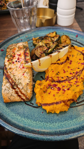 We visited for lunch on Wednesday evening, we were nicely welcomed and seated and well served. We ordered a Burrata for appetiser, and salmon with vegetables for the main course.