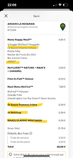 Read moreExpérience déplorable !!! Commande faite le 15/10 depuis l’application mcdo + commande reçu incomplète. J’appelle donc le McDonald’s la roseraie et je tombe sur le responsable qui me dit écouter s’il vous manque des sauces venez les récupérer. Mon mari décide de ci rendre pour les récupérer, ce même responsable dit à mon mari de toute façon je crois ma collègue qui dit avoir mis les sauces car mon mari a demandé un geste Co. Quand mon mari rentre et me dit ça je reprend le téléphone en lui disant qu’il nous traite de menteur pour des sauces oublié ! Il n’a pas voulu répondre et restez silencieux. Je trouve cela déplorable je suis enceinte de 7 mois avec un bébé de 1 ans et demi je décide donc de passer commande via l’application pour ne pas me déplacer et manger mcdo avec ma fille chez moi mais l’expérience ce fut déplorable. Plus jamais je consomme chez vous ! Et en plus après m’être énervé je me rend compte que le jouet pour ma fille n’a pas aussi été mis. Mais j’imagine que si j’aurais rappelé le responsable il m’aurait dit que je mens encore c’est cela et d’ailleurs j’attend toujours de me faire rappeler car via l’application je pouvez donner mon avis et un rappel devait être fait si je n’était pas...