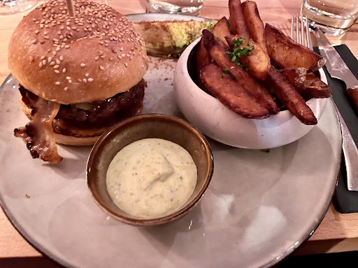 Read moreUne adresse à découvrir ou redécouvrir !!! Un restaurant très sympa une décoration moderne. La serveuse est extrêmement sympathique merci pour la petite bougie pour l’anniversaire de ma fille😉👍. Le patron très abordable merci pour le verre de vin offert car le burger de monsieur avait un peu de retard (3min rien de grave vraiment 😉) des patrons comme vous on n’en voit plus souvent !!. Une cuisine maison avec des produits de qualités des vraies saveurs une carte qui n’est pas à rallonge (merci ça rassure)du plat au dessert c’était top et les frites une tueries ! Une addition abordable qui permettra de revenir régulièrement. Les enfants vous ont adoptés et nous aussi....
