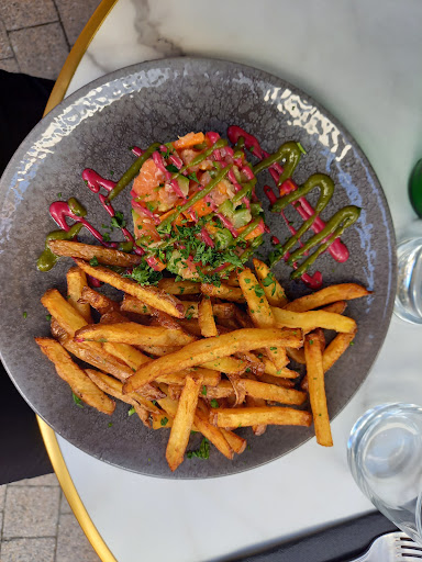 Wonderful restaurant/bar as non speaking French the very hard working waiter was so helpful we had a small dog and he told us we could eat in the bar area with it or outside not in the .ain restaurant area so we sat down and he noticed that the table area where we was had a cold breeze hitting it and could see the wife was a little cool so when a table came free on the edge of the restaurant out of the draft he told us to move there .wonderful service did not need to .The food was superb fresh hot and beer etc was very reasonable prices .If you are in the town try it great lunchtime...