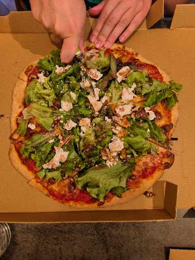C'est pas mauvais, mais c'est pas très bon non plus : La pâte manque de finesse et de légèreté la garniture est fournie mais de moyenne qualité aussi : la mozzarella râpée industrielle, c'est bof (mais c'est vrai que mettre de la mozzarella di bufala, c'est pas le même prix, et c'est un prix qu'il faut répercuter sur la pizza), la viande de kebab surgelée et très poivrée tellement elle n'a pas de goût, ça reste presque mieux de ne pas la proposer. les pizzas sont petites (environ 25cm de diamètre) pour leur prix (10 à 14€).