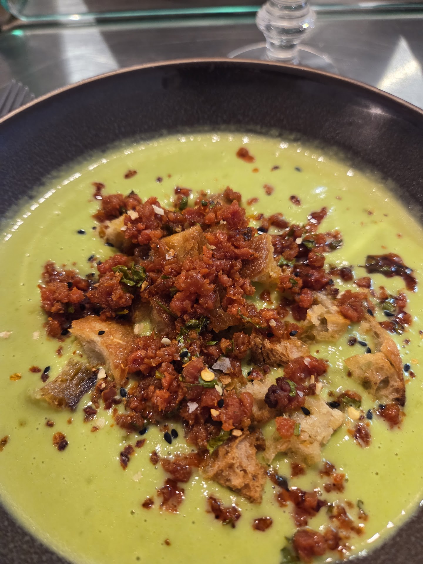 Read moreConcept très sympa de magasin - cantine. Les clients se connaissent, ça discute, il y a un comptoir pour manger. Une formule unique le midi avec 1 entrée, 1 plat et 1 dessert et les combinaisons habituelles. Ce jour là, c'était velouté des petits pois, crispy de chorizo, pâtes bolognaises. Très bien cuisiné, du goût, de la recherche, même si l'énoncé est simple. Ce n'étaient pas de simples bolo, mais un ragoût de viande à la tomates avec des pâtes al dente, des herbes, des épices, des herbes, des lichettes de parmesan. Service très rapide du coup et sympathique que plus est. Vins choisis avec amour. Une bonne adresse donc. 20,60€ pour entrée + plat + 1 café. 2€ de plus et j'avais le dessert, mais...