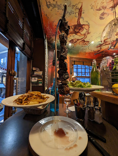 I went there yesterday evening without reservation at around 19 and I got a table immediately. Really nice and quiet restaurant. Service was friendly and approachable. I orderered a salad sarladiase as starter. Really good. I ordered after the boef brochette, medium-rare. Not sure if due to a misunderstanding, or a mistake in the kitchen, it was rather well done, which made it a bit tough and chewy. It was okay, so I did not mention anything, but it was a bit unfortunate. The fries are fresh and delicious. For dessert I ate an 'ile flotant' and a scoop of pistachio ice cream. Both were superb! The ice cream was creamy and very soft. The Ile flotant was not over sweet, but just perfect. You could see the vanilla specs in the cream. It is a must try. Very...