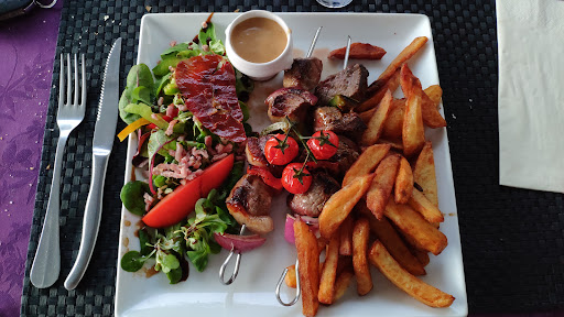 La cuisine est grasse et sans aucun intérêt culinaire. Entrée, une salade, 4 gésiers poêlés et deux quartiers de tomates ou alors 3 minuscules rondelles d'un pseudo foie gras qui ressemblent plus à un paté de foie. Plat: on vous annonce des ribbs de porc noir, il s'agit en fait de deux morceaux de porcs confits qui baignent dans une sauce grasse ou alors une brochette de boeuf tout à fait ordinaire accompagnées dans les deux cas d'une quenelle de carottes et de frites bien grasses elles aussi. Dessert: c'est peut être là seule chose qui semblait correcte, dommage, je ne l'ai pas pris de crainte de trouver la même qualité que le reste. Pour finir, le service: alors là c'est le summum. Une femme avec une propreté douteuse tant au niveau des mains que de sa tenue. Des bras plein de boutons qu'elle vous met sous le nez, les manches longues seraient un plus. Et je ne parle pas des familiarités que cette personne s'autorise comme si nous étions ses copains! . Je lui ai d'ailleurs dit au moment de l'addition (135€ à 3) qu'elle ferait bien d'aller bosser chez Lacoste tant sa cavité buccale est grande et avec une haleine très alcoolisée. En conclusion: il s'agit d'un établissement à éviter absolument. J'imagine que les avis favorables sont ceux de la famille...