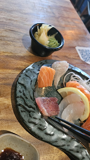 The dish is another story... do you want to feel being scammed? Just order the Sushi Sashimi, served with a salad and white rice. The salad is fine, soaking in a sauce but.. fine, the white rice portion was small... As an asian, this is an insult, then come to this fish... The portion was so tiny... I could make a full baby sushi with my rice for my 6 month baby... Seriously, this is insulting for 16 eur. Look at the picture... lol what is this.. small and fine.. this is not Sashimi... This is leftovers.