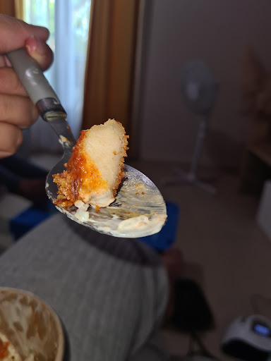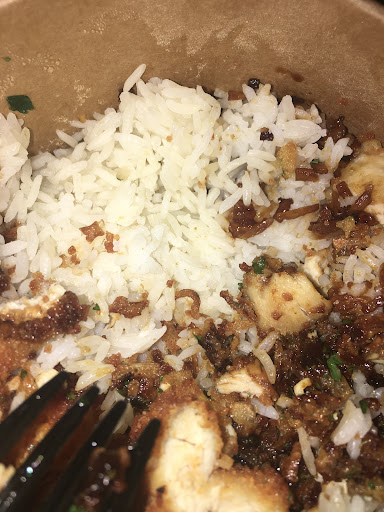 Déjà en terme de goût c’est horrible la sauce a un goût extrêmement fort et très très salé (genre VRAIMENT SALÉ et j’abuse même pas). Ce n’est pas normal pour un krousty ayant test des dizaines de restau différent c’est la 1ere fois. En terme de garniture quasi que du riz et c’est même pas des morceaux de poulet frit mais du poulet « émietté » par ci par là. Sauce goût horrible et garniture à revoir.