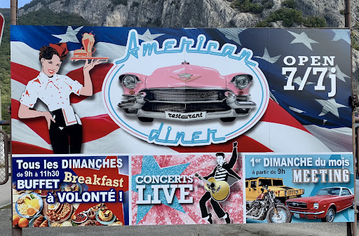 Read moreChouette adresse à l'ambiance Americaine, un décor qui fait voyager, avec une entrée un peu + ranch et Mexico, puis une salle rétro 50s américaine et une salle un poil + 60s à 80s. Personnel souriant et motivé, serviable et efficace même en forte affluence ! L'équipe est vraiment gentille et passionnée, ça se sent. Les derniers dimanches de chaque mois un rassemblement voitures/motos est traditionnel, mais les venues sont aléatoires selon les saisons. Il n'en reste pas moins qu'on nous a accueilli adorablement en tenue pin-up et même laissé faire des photos en cosplay (thème DC bombshell), en toute bienveillance !!! On apprécie les plats très généreux, savoureux, bien cuisinés, avec des produits frais et des compositions variées restant dans le thème : burgers, hot dogs, frites (avec option patates douces !!), tapas, mais aussi spécialités mexicaines, ainsi que plats poissons et viandes au besoin, et même des choix végétariens, tous les allergènes sont clairement identifiés, il y a des cocktails avec et sans alcools, et des desserts à foison aussi, ainsi que les traditionnels milk-shakes bien dans le thème ! Des horaires larges et personne qui ne nous pousse vers la sortie même quand on traîne sans réaliser qu'il est bien tard ! On nous a même gentiment accommodé aux demandes de placements alors qu'on n'avait prévu que d'être 2 personnes et que 4 amis supplémentaires sont arrivés en surprise ensuite. Réactivité et adaptabilité appréciées. D'ailleurs tout l'établissement est accessible aux personnes en mobilité réduite et les toilettes aussi. Un grand parking gratuit juste devant, et même une terrasse... des soirées à thèmes aussi, et l'endroit a forgé sa réputation depuis des années... Bref on remercie l'équipe avec les 5 étoiles bien méritées et...
