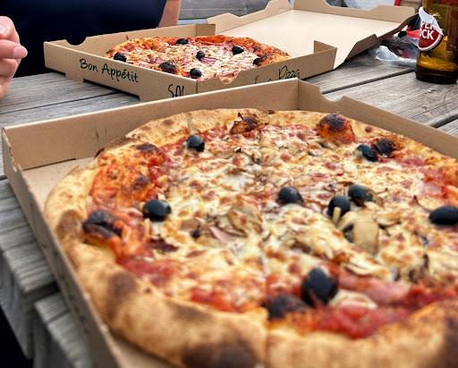 Found this place whilst staying up the road at a campsite. Just turned up and ordered at the counter. I don't have much French but staff were lovely and not a problem. A sign of it being a good pizza is that locals were collecting pizzas and we had a bit of a wait but it was worth it. (there is also a 24hhour pizza slice vending machine). Prices are probably on a par with what you'd pay in UK. Paid by card. BTW there is a street burger van next door so ordered some chips /fries whilst waiting, 5 euros and so tasty. All in all would defo recommend to anyone wanting a tasty pizza at...