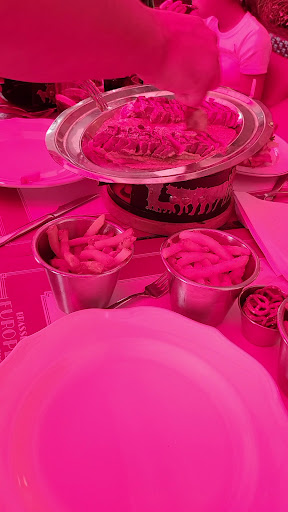 1 - Les explications du serveur à l’accent incompréhensible n’étaient d’aucune utilité, nous n’avons rien compris… ! 2 – Au moment où la viande commençait à chauffer et cuire, nous devions nous servir, ainsi, il y avait des projections de beurre partout sur la nappe et nous avons dû faire attention à nos habits… ! 3 – Depuis le début de la cuisson de la viande dans cette sauce verdâtre servant à cuire la viande le beurre s’est complètement dissocié et vers là fin du plat, le beurre était noir donc indigeste… ! Les frites froides car il fallait attendre la cuisson de la viande, et la salade trop peu… !