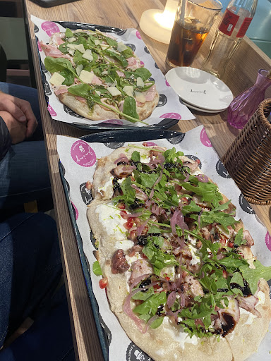 We have been warmly welcomed with my friends.The saff is friendly and caring. The drink was exceptional, I loved the Mocktail's proposition, and my friend took a Violeta cocktail that's loved it ! We took one Lucas, one Buratta and one Prima. The dought was exceptional, and the Burrata was creamy as will, soft and tasty. They are so careful that they were worried that my friend may couldn't eat pork and they come to explain us that San Daniele is an Italian ham, haha. Totally Jewish and Muslim and Vegetarian friendly place ! Plus, the affogato was a nice dessert ! ♡ ♡ ♡ ♡ ♡ ♡...