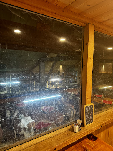 Read moreUn nom véridique, puisqu'il s'agit bien d'une ferme et qu'on mange un peu à l'étable ! Production bien locale et restauration servie en mode rustique juste au dessus des vaches productrices ! un concept sympa au charme traditionnel des Alpages, à quelques minutes d'Annecy, avec une carte bien Savoyarde de spécialités locales. Une ambiance unique qui change un peu des restaurant guindés mais qui pour autant a un charme bien à soit et attire le tourisme autant que les locaux (en haute saison, même en plein été, réservations à prévoir à l'avance pour avoir une chance !). Idéalement situé sur la route montagnarde en direction de Thônes, la capitale du Reblochon, mais juste en face d'une vue panoramique sur le Chateau de Menthon St Bernard perché au coeur des montagnes et dominant le lac bleu azur d'Annecy. On est à quelques minutes de la ville d'Annecy mais dans une commune plus calme, moins citadine, avec un parking gratuit à disposition, mais dans un coin un peu moins bien desservi par les transports en communs. Des équipements rudimentaires (des tables et bancs en bois comme dans une cantine scolaire rétro) mais fonctionnels, un endroit propre, assez spacieux, avec une bonne capacité d'accueil, des tables et assises bien aménagées pour optimiser l'espace et l'avantage de proposer aussi les productions de la ferme directement en vente sur place sans intermédiaire. Côté carte restauration, les spécialités Savoyoardes (Raclette, Tartiflette, Reblochonnade, Tome blanche...) mais dans une formule à prix fixe identique et surtout servi à volonté donc vraiment adapté à tous les appétits ! Évidemment ce sont des produits locaux, frais et savoureux mais sans chichis ! Personnel sympathiquement agréable et serviable, efficace, assez rapide et disponible ! Prix plutôt honnêtes pour la qualité proposée et à la beauté de l'emplacement. ça reste accessible pour des budgets moyens donc vraiment un endroit qui reste humble malgré le tourisme. Testé et approuvé à plusieurs reprises, voire même devenus des habitués locaux depuis plusieurs années, jamais...