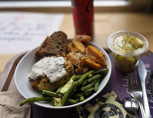 Read moreUne vraie Cantine. On fait la queue, on choisi son plat avec son accompagnement, Ă©ventuellement son entrĂ©e et son dessert et on se trouve une place. La nourriture est bonne avec des produit de saison, on se croirait chez soi. Lâambiance est bon enfant un peu bruyante mais on peu quand mĂȘme discuter avec son voisin de table. La note a aussi Ă©tĂ© une belle surprise : 26⏠pour deux avec le cafĂ© ! Jâai cru quâils avaient oubliĂ©e de conter un menu ... Donc excellent rapport qualitĂ©/prix. Ăa mĂ©rite 5 Ă©toiles mais le je suis un grand amateur de cafĂ© et, dommage, il nâest vraiment pas bon. Mais bon ça ne mâa pas laissĂ© un gout amer a la bouche, jây retournerai. Attention, venais tĂŽt câest bondĂ© ! Je le recommande trĂšs...