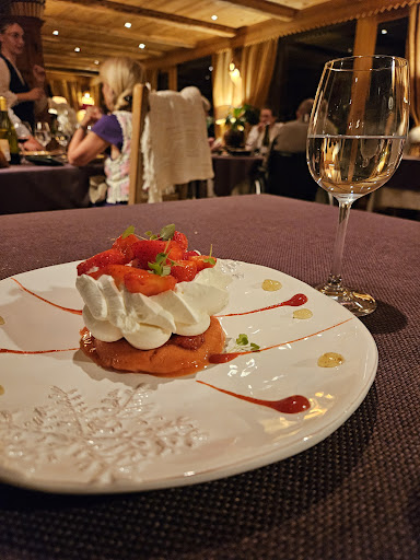 Entre amis ,à 5 , accueil chaleureux comme le décor . On est accueilli dans les salons : la tarte reblochon accompagné les apéritifs. Nous choisissons nos mets après présentation par un responsable. Le chef 2 toques vient discuter un petit moment avec nous Passons à table! Pain complet, céréales, sarrasin ou blanc Amuse bouche avant d entrer dans le vif du sujet Repas raffiné : filets de perches du Leman et émulsion de fenouil, suivi de ris de veau aux morilles avec émulsion de chou fleur, autres entrées :raviolis foie gras, foie gras maison...en plats: mignon de porc, pièce de bœuf, ... goûteux et sublimé Un plateau de fromages du cru principalement.. De merveilleux desserts.. Service impeccable, à l ' écoute des clients. Les deux toques de Gault et millau sont vraiment méritées. Un Super panorama par beau temps.pas loin de la Clusaz et des pistes de ski.. Ce chalet fait hôtel Ferme du 9 sept...
