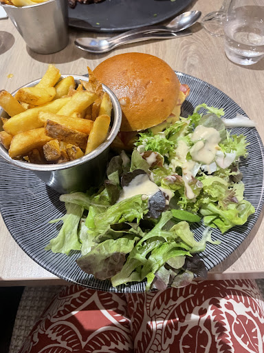 Read moreUn choix intĂ©ressant de plats variĂ©s ( viandes, poissons, salades, plateaux Ă partager, burgers, etc ... ) dont la majeur partie sont assurĂ©s ĂȘtre cuisinĂ©s sur place par un petit logo. Une carte des vins et alcools Ă©galement bien fournie. La carte des desserts est pas mal non plus mais j'ai Ă©tĂ© déçue de ma coupe glacĂ©e ( la "coupe gourmande" ) qui ne correspondait pas Ă ce qui Ă©tait dĂ©crit en terme de parfums et en dehors de la glace vanille, les autres parfums n'Ă©taient pas super. Cependant, une collĂšgue a pris un fondant qu'elle a trouvĂ© trĂšs bon. Le tout pour un prix correct ( 29âŹ/personne pour apĂ©ro, plat, verre de vin et dessert ). Pour ce qui est de la salle, elle est trĂšs grande et permet d'accueillir aisĂ©ment plusieurs groupe en plus des autres clients. La dĂ©co est pas mal avec notamment un beau mur de bouteilles de vins et une lumiĂšre un peu tamisĂ©e. Petit hic, on a eu un peu froid dans la salle arriĂšre Ă proximitĂ© de la sortie de secours et avec l'ouverture de la baie vitrĂ©e par 3 fois dans la soirĂ©e ( alors qu'il faisait -5â Ă l'extĂ©rieur ! ).