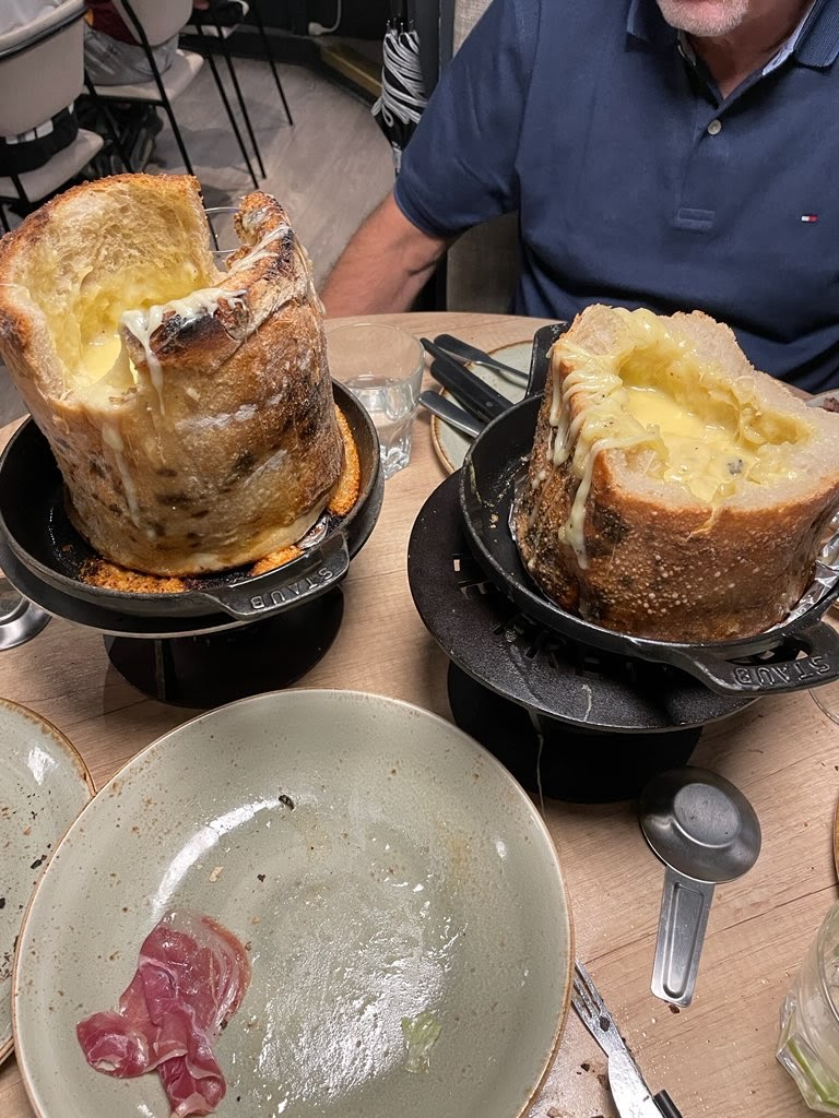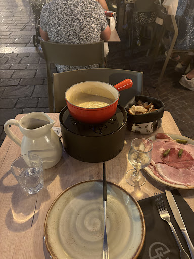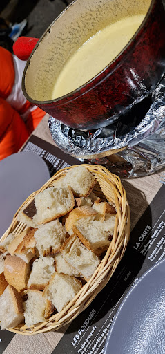 The waiter was not very helpful (we dined outside at around 7pm on a Wednesday), we looked at the menu for a long time and when we finally settled in the cheese fondues we wanted to order we asked the waiter if the two fondues were enough or if he had some recommendations. We then ordered the ‘traditional Savoyard’ and ‘Forest fondue’. The first was delicious but the second was not great, the mushrooms were very rubbery and tasted bland. The bread that came with the fondue was very stale. We understand bread should be crusty with fondue but this was just very stale dry bread - not even crusty.