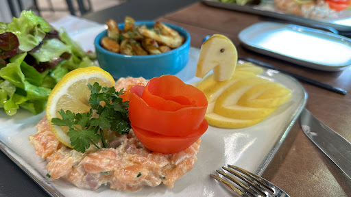Du lever de filet de dorade, à la lotte sauce juste infusée à la sauge, du mille feuille de crabe avocat concombre, du tartare de saumon exceptionnel, le produit de qualité bien traité par le poissonnier, le chef de cuisine et une écoute du service. Une maîtrise du travail sur le poisson, la finesse des saveurs et la maîtrise de la cuisson. Tout est au rdv, époustouflant sans parler de la panna cotta délicieusement et discrètement infusée à l’anis étoilée. Les 3 étoiles au prix bistrot. Chut, préservons le lieu…