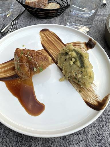 Read moreLe cadre est joli et calme, les plats corrects mais c'est tout. La personne à l'accueil/réception n'était pas souriante, on a eu l'impression de la déranger, elle ne s'est pas levée pour nous accueillir ni pour nous accompagner jusqu'au restaurant alors qu'il n'y avait pas d'autres clients à prendre en charge avant ou après nous. On a eu une table bancale et le serveur le savait, pourquoi ne pas en avoir mis une autre s'il était au courant ? Le restaurant n'étais pas complet, il y avait d'autres tables disponibles dehors (un soir de pluie elles n'ont pas été utilisées). Nous n'avons pas eu nos boissons en même temps. Les entrées manquaient d'assaisonnement mais le plat/dessert étaient bons. C'est une jeune femme qui nous a apporté nos plats, sans faire l'effort de nous dire bonsoir. J'avais précisé au moment de la réservation que nous venions pour célébrer l'anniversaire de mon conjoint. Pas de bougie au dessert ni même de petit mot de la part de l'équipe, dommage, a quoi sert-il de vous donner des informations si vous n'en faites rien ?. Et au moment de l'addition, on a du se lever pour aller régler au comptoir, la note à été vulgairement posée devant nos yeux, mon conjoint a donc vu le montant que j'ai payé, pour une occasion comme celle ci c'est dommage. Pourquoi ne pas investir dans de jolies pochettes pour ranger l'addition et la donner à la personne qui règle ? Aussi, nous avons posé une question au serveur, qui n'avait pas la réponse, ce qui n'est pas un problème en soi, mais il nous a répondu "faudrait que j'me renseigne", et nous sommes bien sûr toujours en attente de la réponse. Ce n'est pas grave car nous ne...