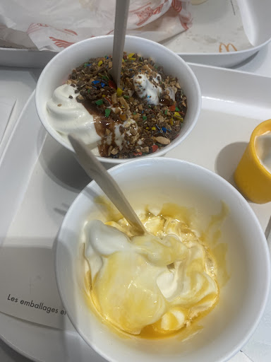 Read moreDéjà ce restaurant est d'une crasse absolue, il faut faire le ménage des tables et assises soi-même et ce n'est pas ragoûtant. Après avoir mangé un Big Mac tiède et tout mal fagoté et des frites en limite de chaleur et dont une sur 2 a des "yeux noirs" (pomme de terre abîmée), on ne peut même pas compter sur le Coca pour rattraper le coup car c'est juste un soda insipide servi à la place. Comme je n'en ai bu que 3 gorgées et qu'il n'y avait plus de place pour le vider quelque part, je l'ai rapporté au comptoir tout comme les 4 sachets de sauce qu'on m'avait apporté alors que j'avais cliqué sur "NON" à la borne pour les sauces. Le gentil jeune homme qui s'est approché de moi au comptoir n'a pas compris le message et m'a juste débarrassée sans tilter. A ce sujet il y avait beaucoup beaucoup de monde dans la partie cuisine (dont la majorité non occupée à ce moment-là) et personne en salle pour nettoyer. Les poubelles du restaurant dégueulaient, les verres en plastique trônant de toute part. Mon avis concerne ce restaurant mais pas que celui-là. Il y a un vrai problème de fond dans vos restaurants, il y a une qualité qui s'est énormément perdue au fil du temps alors que paradoxalement on paie bien plus cher qu'avant. Ce qui s'explique sûrement par l'inflation, le coût des matières premières, les difficultés de recrutement aussi et donc le manque de ressource pour tenir correctement les lieux, le changement sociétal qui fait que les jeunes employés passent probablement plus de temps sur leur téléphone qu'à servir le client ou à nettoyer la salle de restaurant. Le résultat est là et le constat est éloquent. Non on ne s'attend pas à manger gastronomique dans un Mac Do, mais il est regrettable de ne plus pouvoir manger...