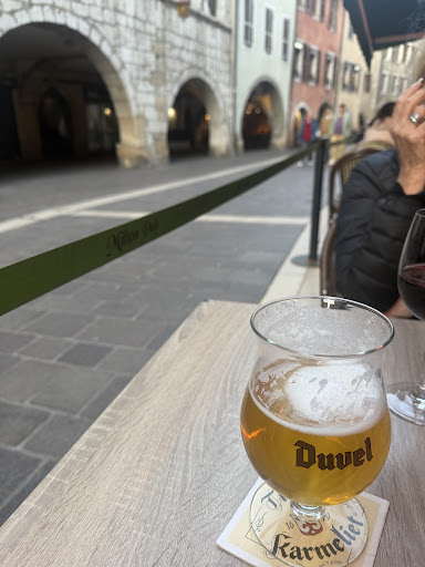 Read moreNice outdoor seating right in the heart of the old village of Annecy - a great place to watch passerby. This place seems to be very popular - any night in Annecy you'll find a large crowd here both inside and outside. The inside continues on much further than one might expect. The walls are lined with bottles of liquor - they do boast over 300 different types of whiskey. You must ask for a separate menu to see the whiskeys - they are ridiculously overpriced even for Europe, though.