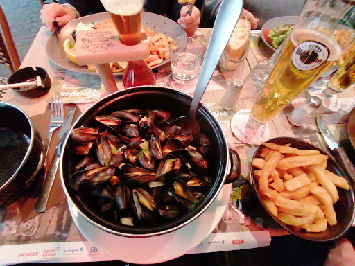 The "beer cocktail" le petit mousse (that left me with a blue tongue after the first sip- full of artificial coloring and god knows which chemicals) and an overpriced beer (€7 for 0.5l ) we got two different bills from two different waiters. We payed both of them, overpaying, because apparently, the waiter #1 couldn't substract "10 - 8,40" correctly - they didn't bring us the correct change.
