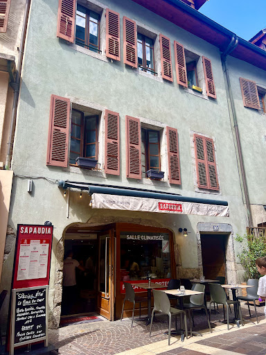 We had a lovely lunch here on our recent visit to Annecy. Walking around the old town there is much on offer with varied prices. Sapaudia was perfect for what we needed. Well prices and a wide range on offer: pizza, main Italian dishes, salads and a small child’s section. We didn’t have a dessert but there was much on offer. The good we had was prompt, great portion size and well priced. We sat outside in the street. Whilst you eat other tourists pass by, but it didn’t feel like the crowd were encroaching on your dinner. I would recommend for a quick lunch, but would also be completely fine for a dinner.
