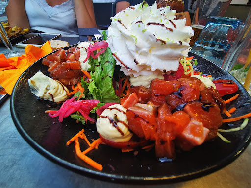 Très déçue Nous avons commandé un burger et un tartare de truite mariné avec huile d’olive, citron et sauce soja . Le burger était bon. Le tartare était nature , de très gros morceaux coupés avec encore des parties blanches (graisse) et marron … j’aurai préféré ne manger que la chair principale qui est plus intéressante au niveau du goût… déjà premier point décevant pour un plat à 22€ Deuxième point la marinade trop légère en goût, j’ai demandé au serveur de m’en apporter un peu plus, il m’a apporté de l’huile d’olive et deux quart de citron… j’ai demandé à nouveau la possibilité d’avoir de la sauce soja.. que je n’ai jamais reçu mais à la place du Tabasco… vraiment ? J’ai quand même essayé mais bon je vous laisse imaginer le mélange… ce n’était pas bon et trop gras du coup ! J’ai du laisser la truite et manger la portion de salade dont la sauce était trop amère et les frites trop molles et grasses… Troisième point le mélange truite cru et chantilly au citron: vraiment pas top le mélange c’était écœurant malheureusement (et pourtant ça avait l’air pas mal en lisant le menu).