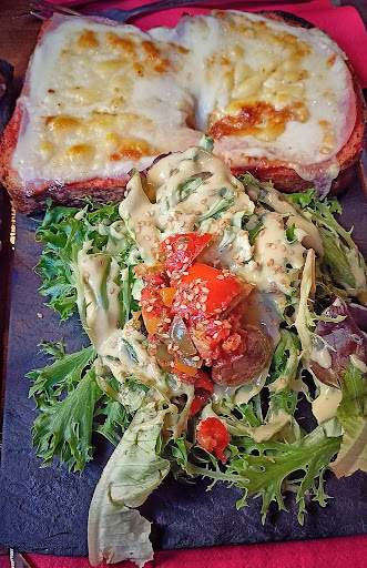 Read moreFranchement, belle découverte. De passage un dimanche. Avec le marché. Magnifique marché. Et là. P'tit resto caché derrière le stand d'olive si je me rappelle bien. On s'approche, et là, un jeune homme sympa nous parles, comme ci qu'on des amis. J'ai trouvé ça plutôt sympa. Du coup on rentre, et c'était ambiance bonne franquette et décontractée. On se sent d'un coup, comme ci on a été rendre visite à des amis. Bon relationnel avec la personne de salle, du coup on voit passer une magnifique assiette de charcuterie. Je dis à ma femme... Je veux ça. C'est ce qu'on a fait. Assiette de charcuterie, avec en accompagnement une bonne bière de la région, selon les recommandations du serveur. Pour notre petite, un croque, croq'odile si je me rappelle bien. Le croc était énorme comparer a notre fille, mais qu'est-ce que c'était bon. L'assiette de charcuterie et fromage... Ma parole t'en avais pour 3 avec des produits d'une qualité Les clients arrivent de plus en plus. Accueilli avec toute la bonne humeur du la personne de salle. Et moi , je décide de commander une bonne tartine avec du bon fromage de la région... Bim la tartine qui arrive est aussi balèze que le croc a ma fille . Ça tombe bien j'avais un bon appétit lol. Une autre petite bière locale avec ça, et franchement bien calé. Pendant que les clients arrivent avec le sourire, dans la bonne ambiance d'être comme chez un copain. On décide de passer au dessert... Tarte aux noix ... Et une tarte aux noix pour le papa Ours a dit le serveur au cuistot qui lui a vue sur la salle. J'étais Mdr . La tarte aux noix, juste trop bon. Puis un petit café, et ma foi... Arrive la moment de partir... A mon grand regret presque. Alors j'ai décidé de laisser un p'tit mot sur les murs, paraît qu'il y a une faute d'orthographe m'a dit ma femme lol. Tant pis mettons ça sur la faute de mes bières. Je recommande vivement, ambiance comme a la maison. De bon produits locaux. Une très belle découverte Et un agréable moment. On regrette pas. Les gars gardez votre concept, ça change des ambiances trop guindé où le client est juste une table avec un numéro. J'ai envie de dire, a bientôt les amis